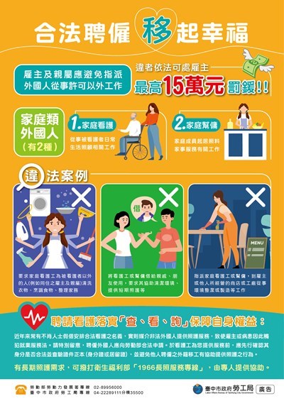 提醒市民留意-勿指派移工許可外工作或非法聘僱-保障勞雇權益